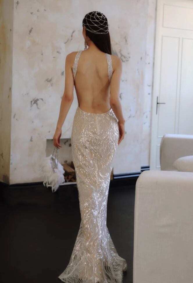 【動画あり】バックオープンスパンコールマーメイドドレス