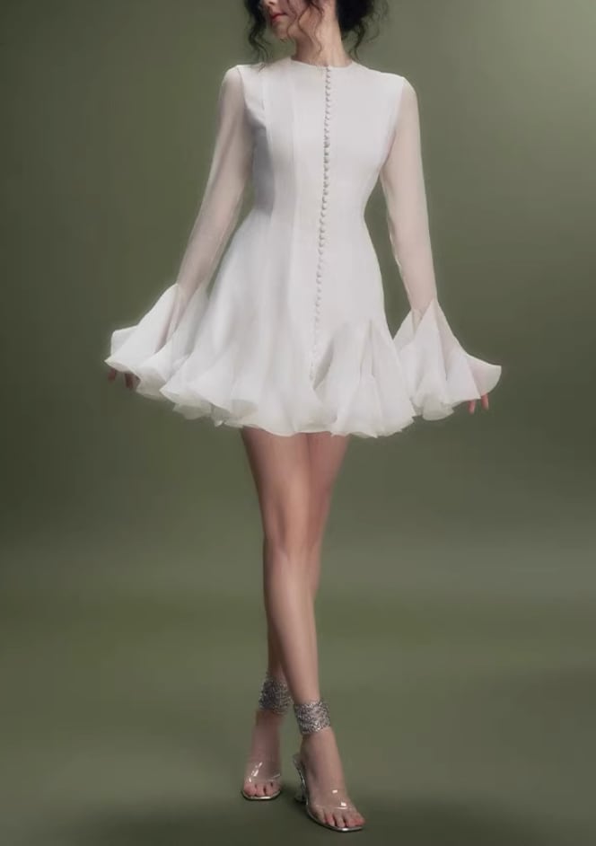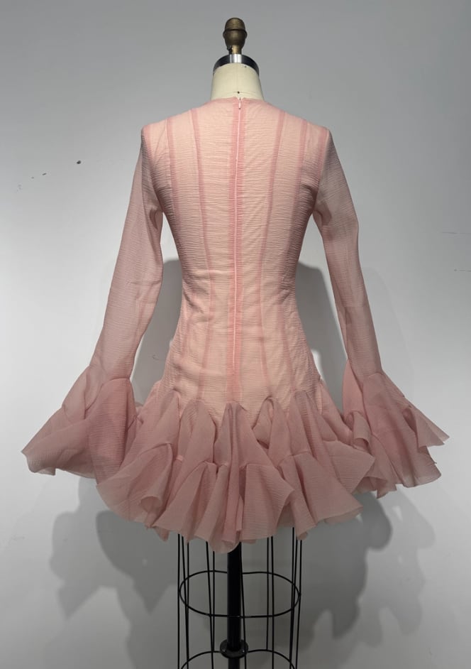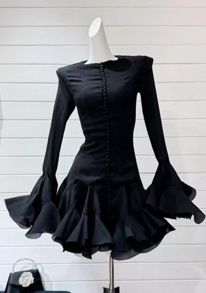 【動画あり】ボリュームフリルガーリーミニドレス 3色展開