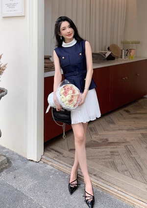 【動画あり】バイカラードッキングチュールワンピース 2種展開