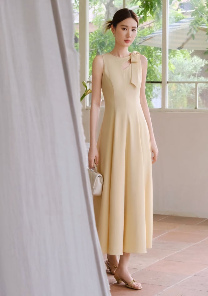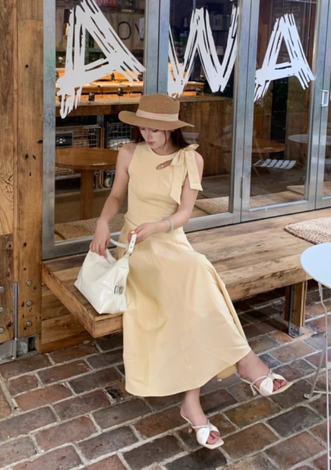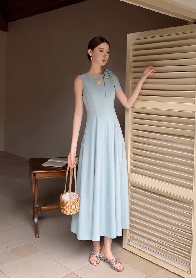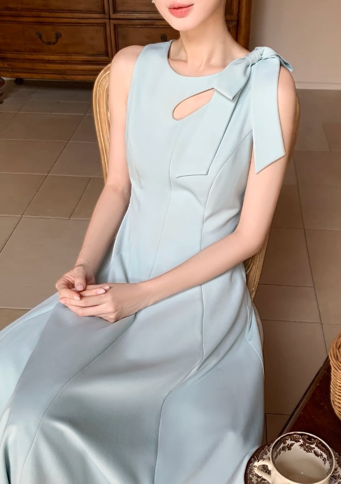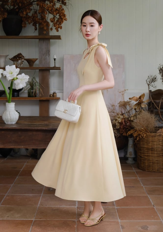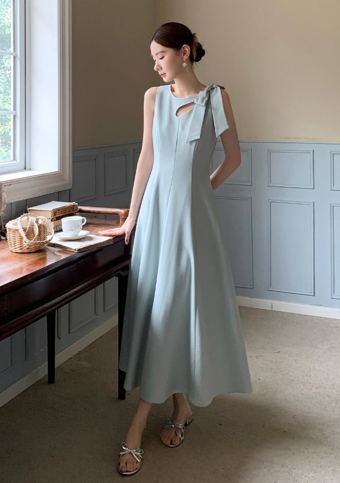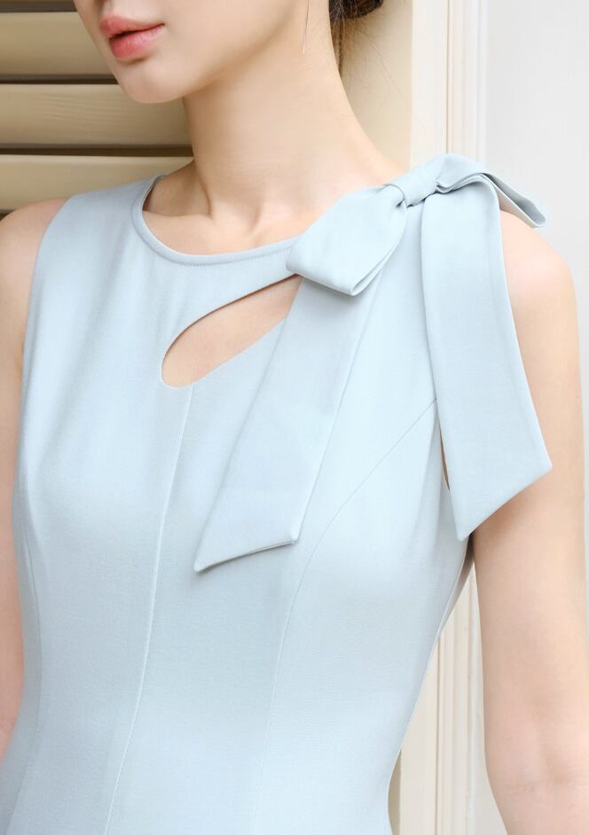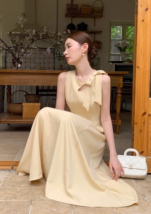 【動画あり】ショルダーリボンフレアワンピース 2色展開