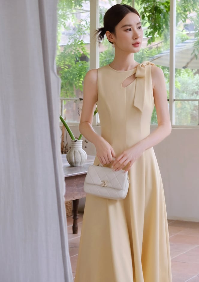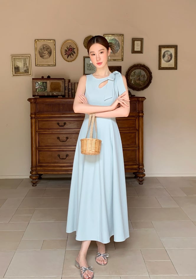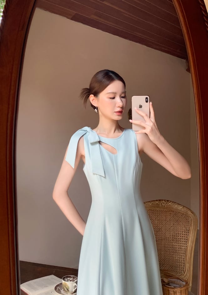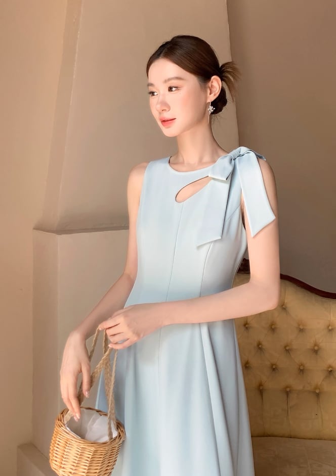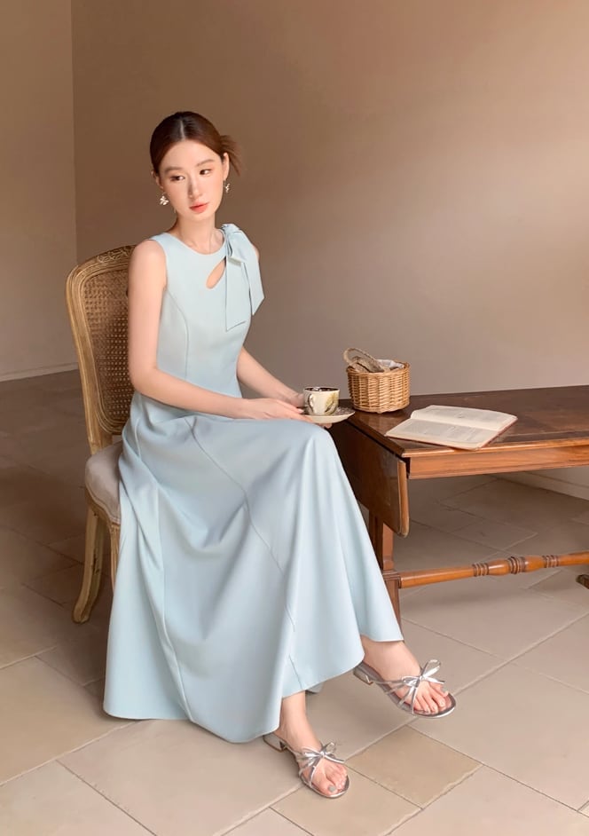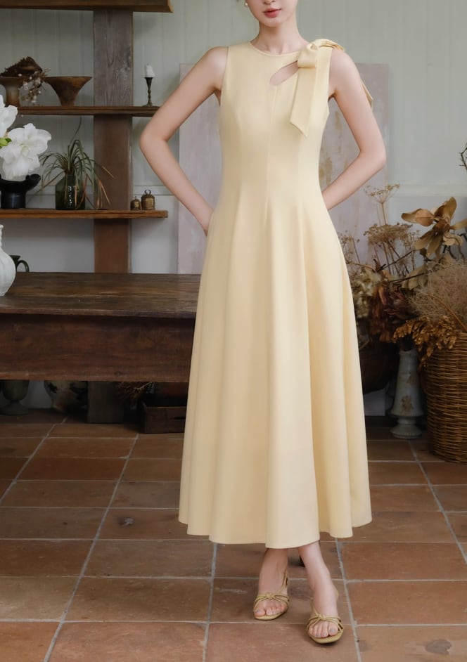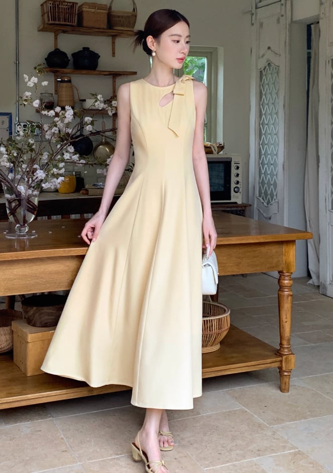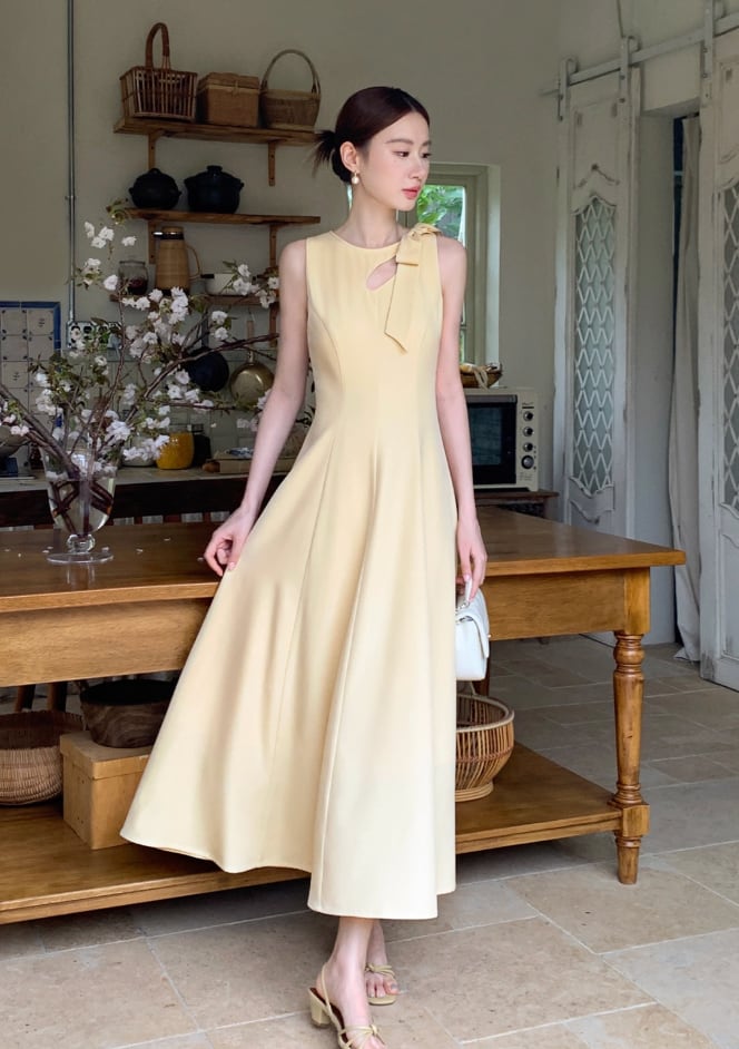 【動画あり】ショルダーリボンフレアワンピース 2色展開