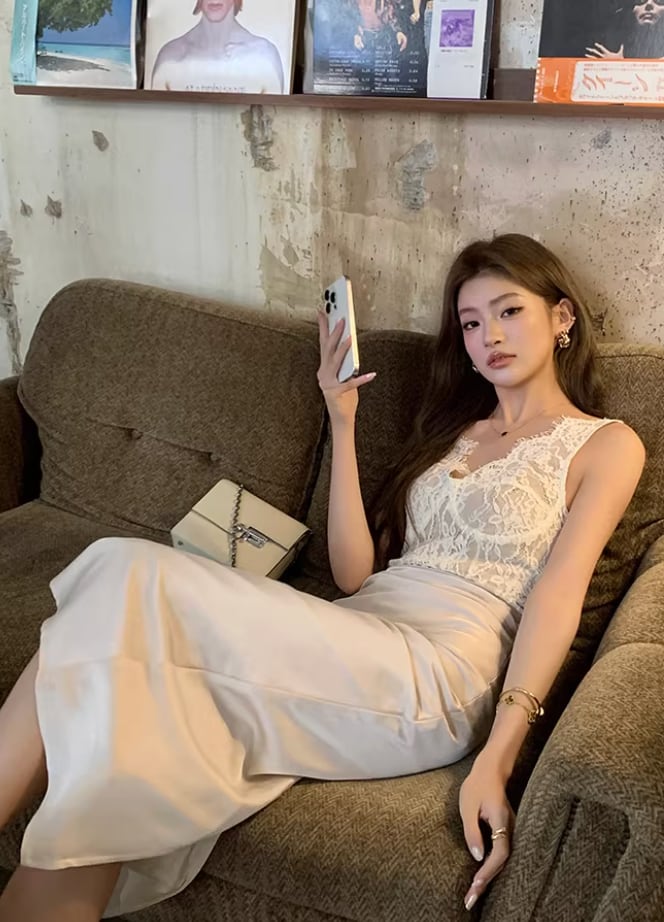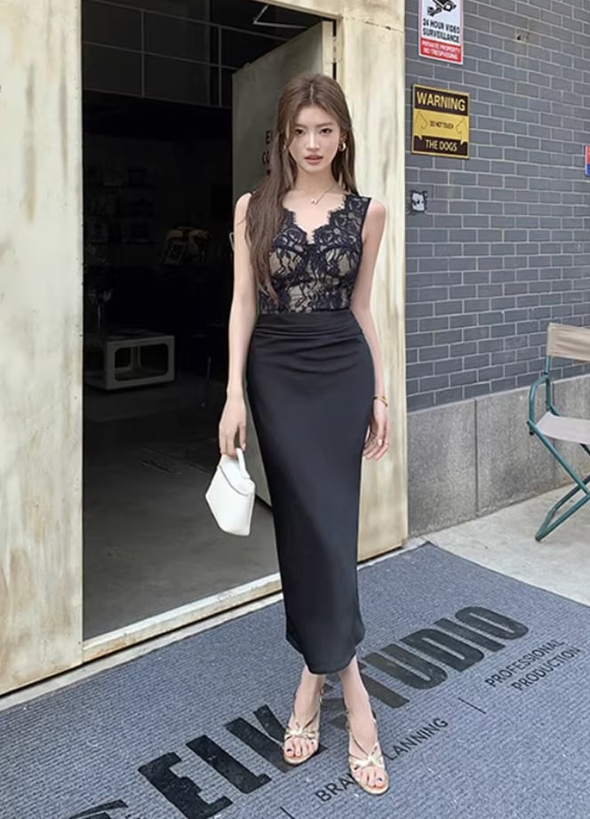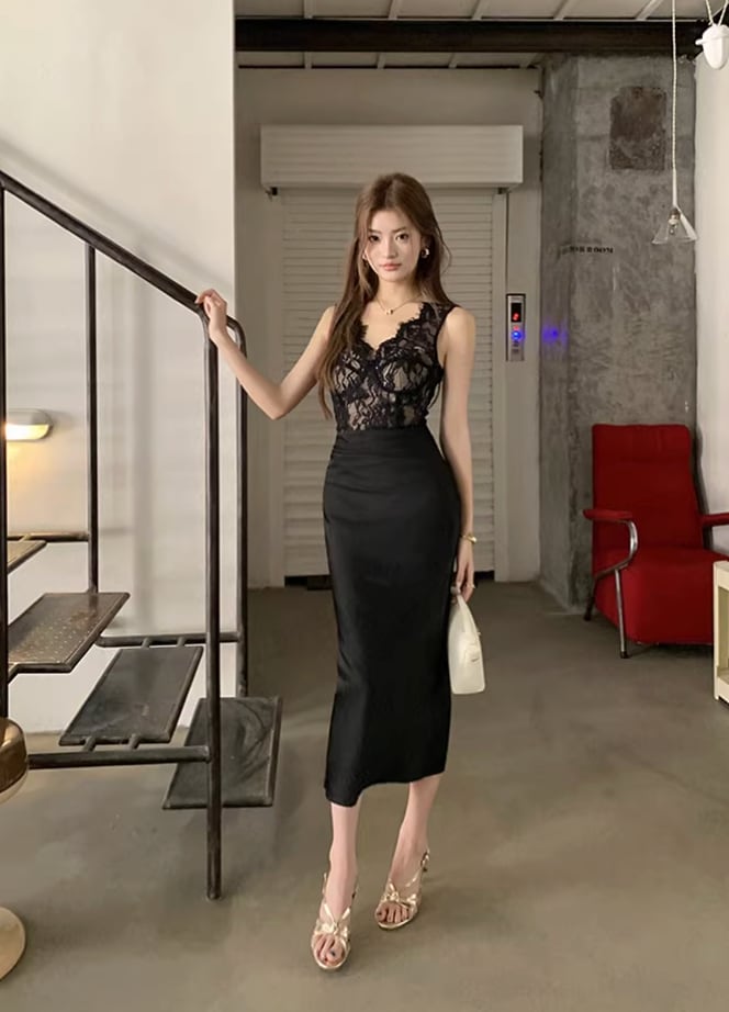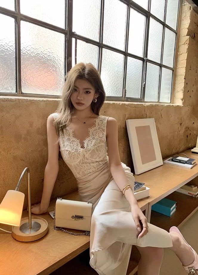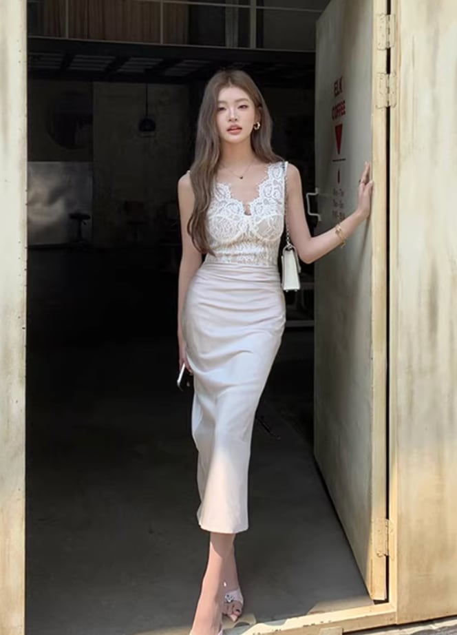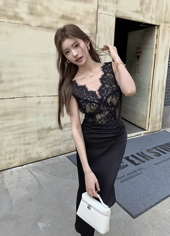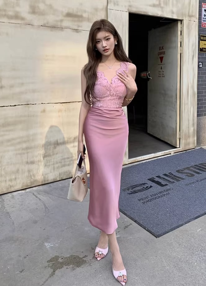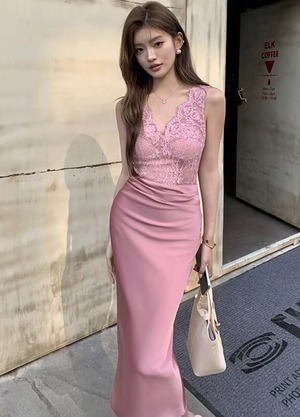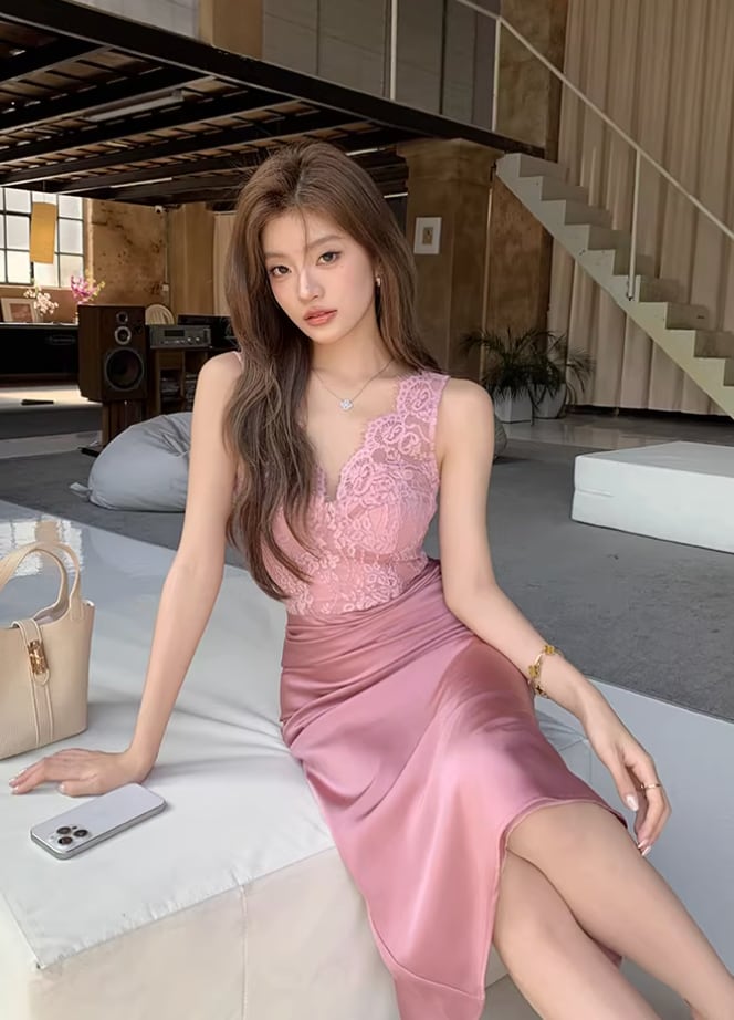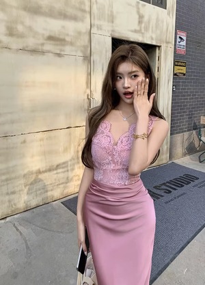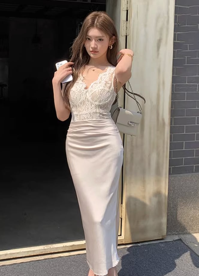 【動画あり】スカラップレース上質サテンドッキングドレス 3種類