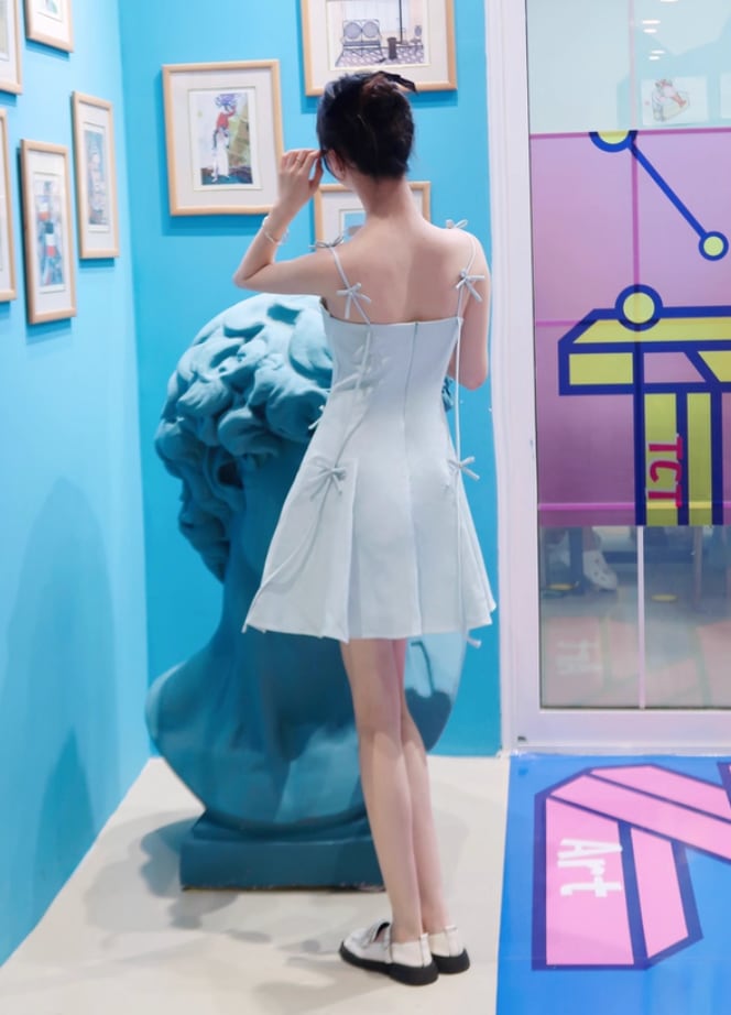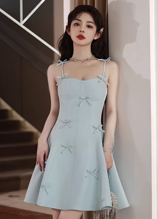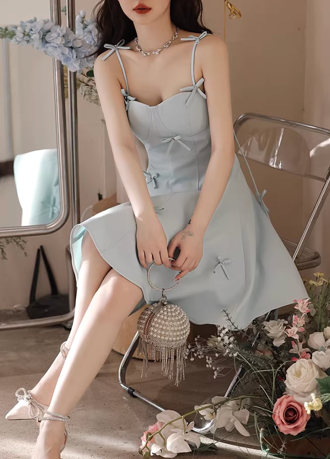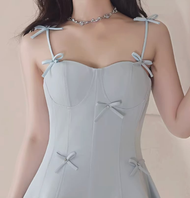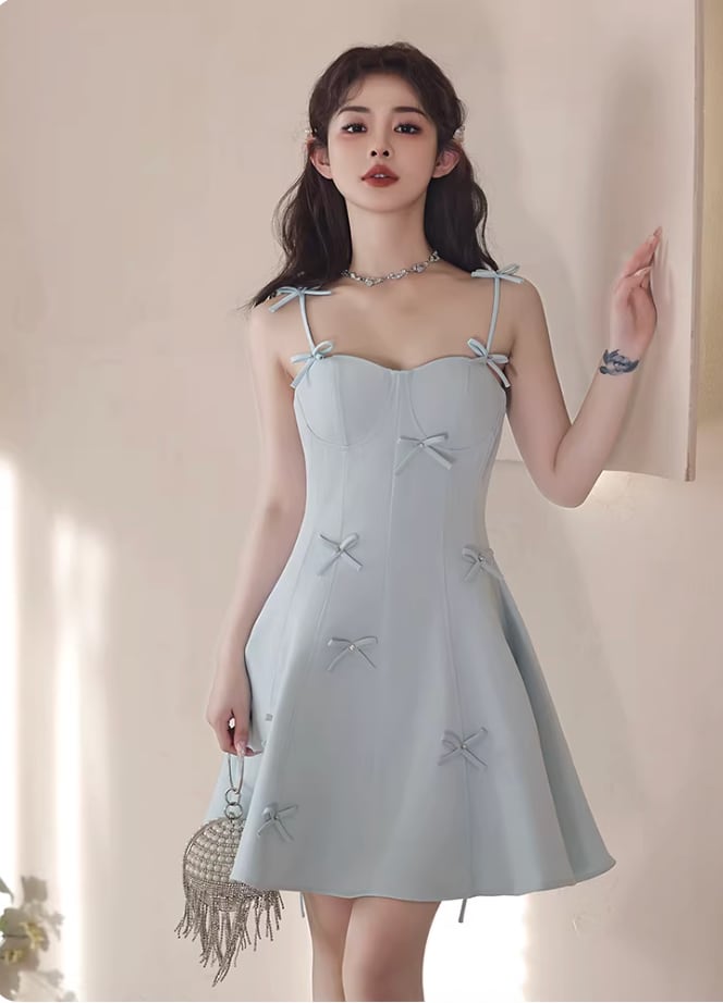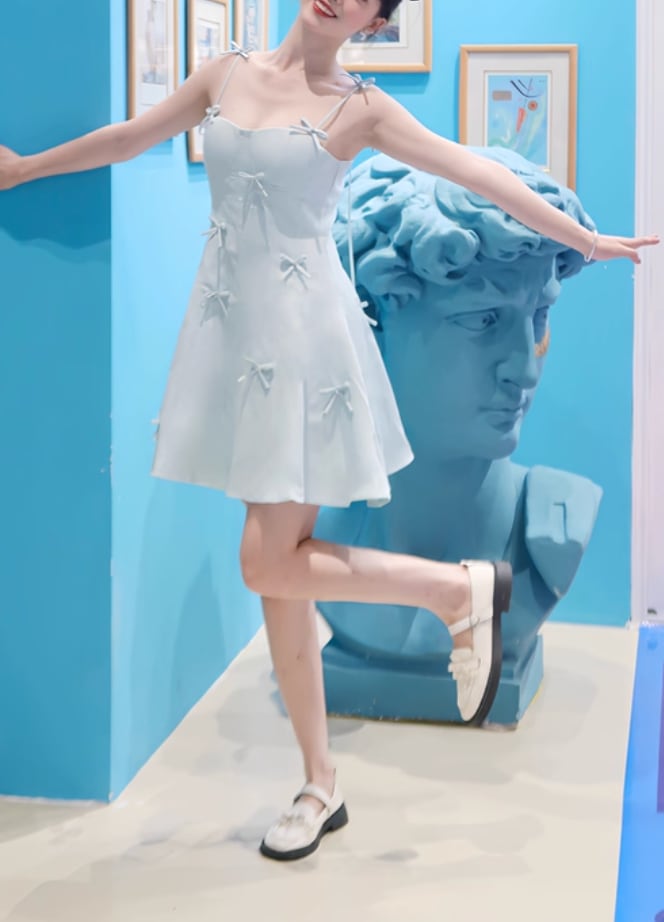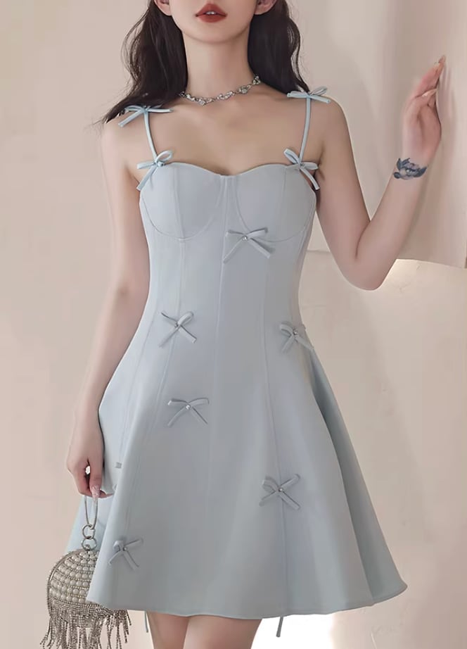 【動画あり】華奢リボンアイスブルーミニワンピース