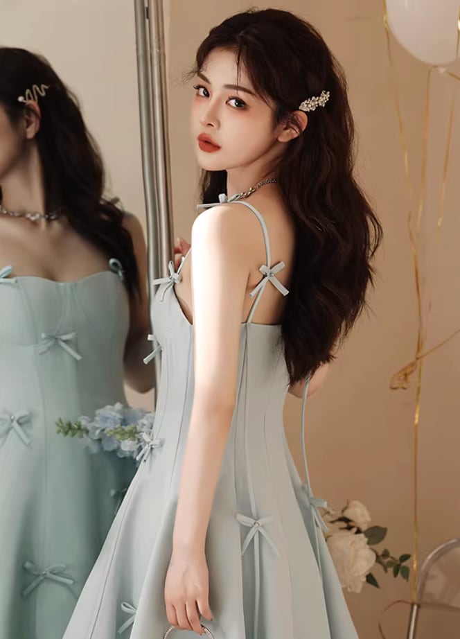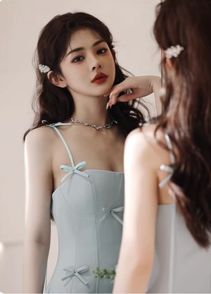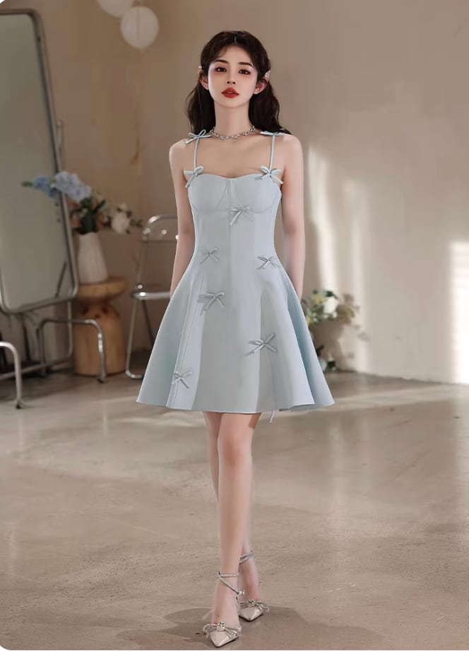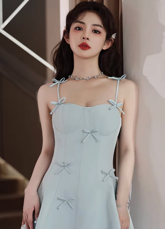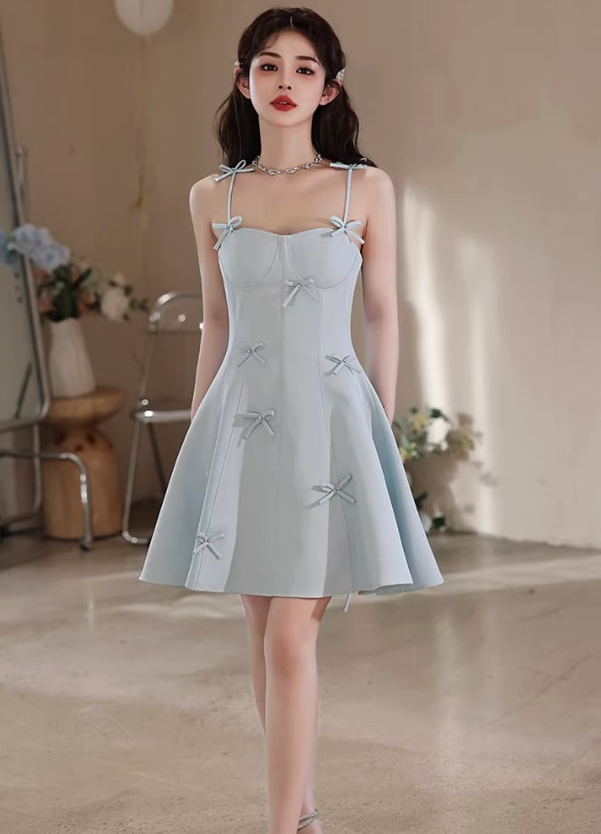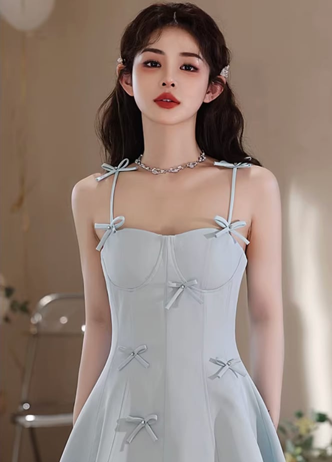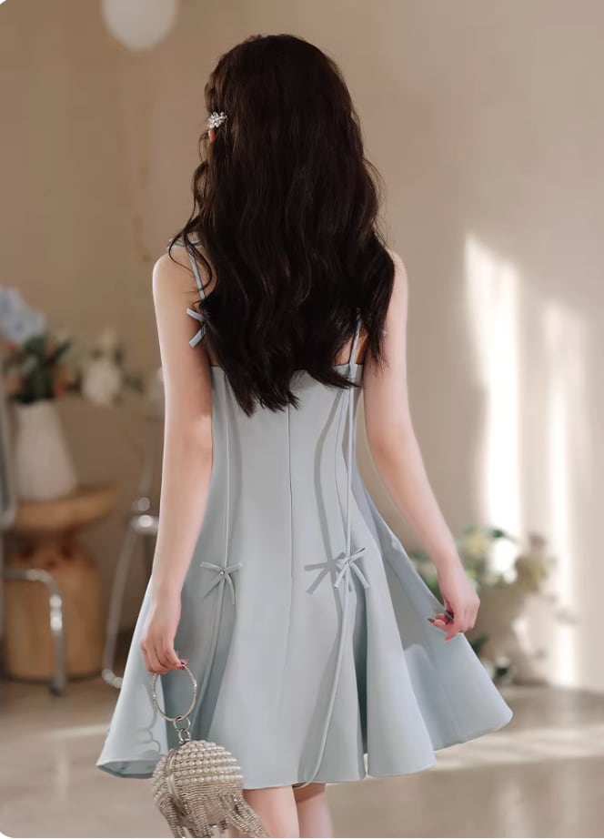 【動画あり】華奢リボンアイスブルーミニワンピース