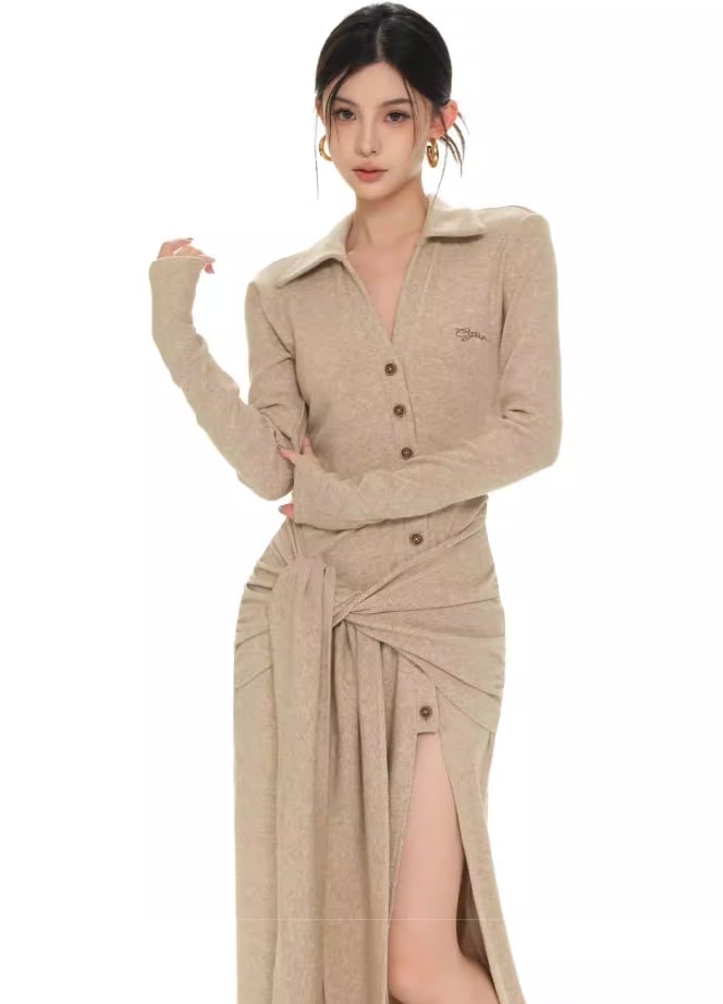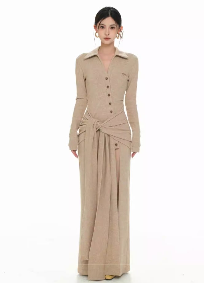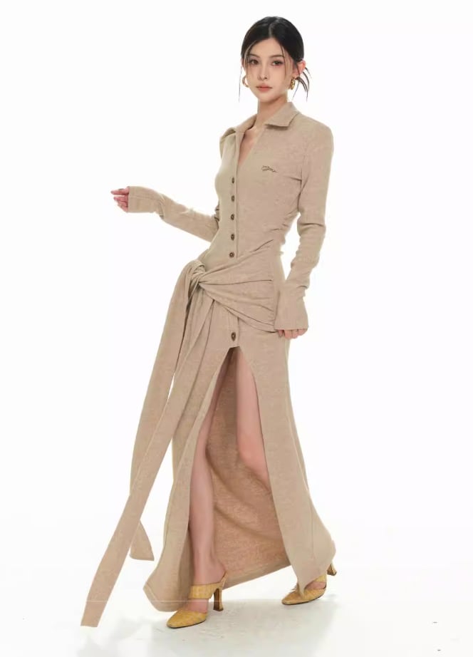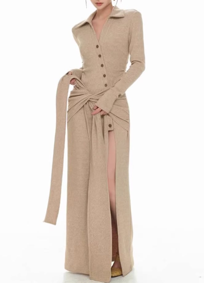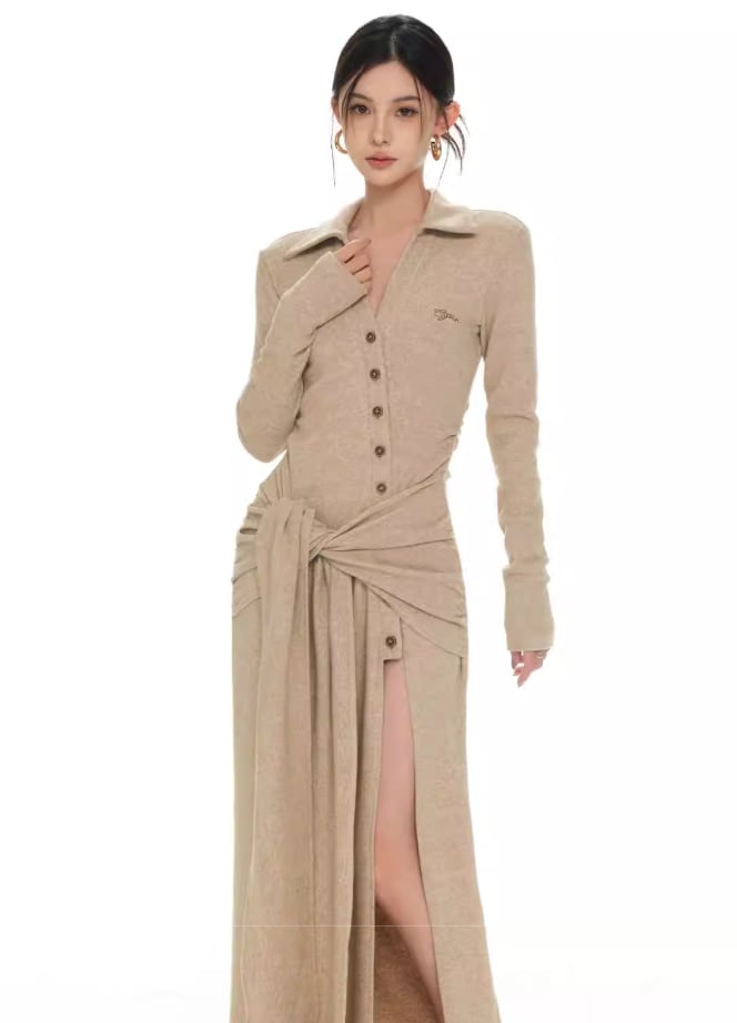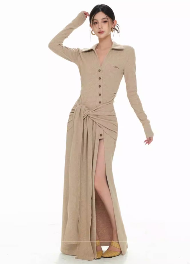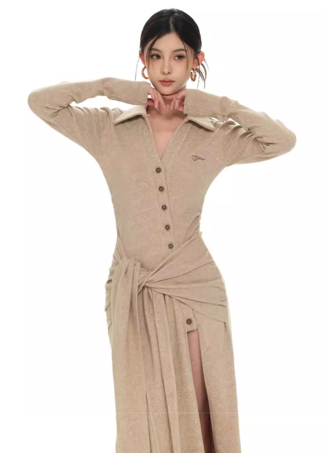 【動画あり】ビッグスリットナチュラルボタンワンピース
