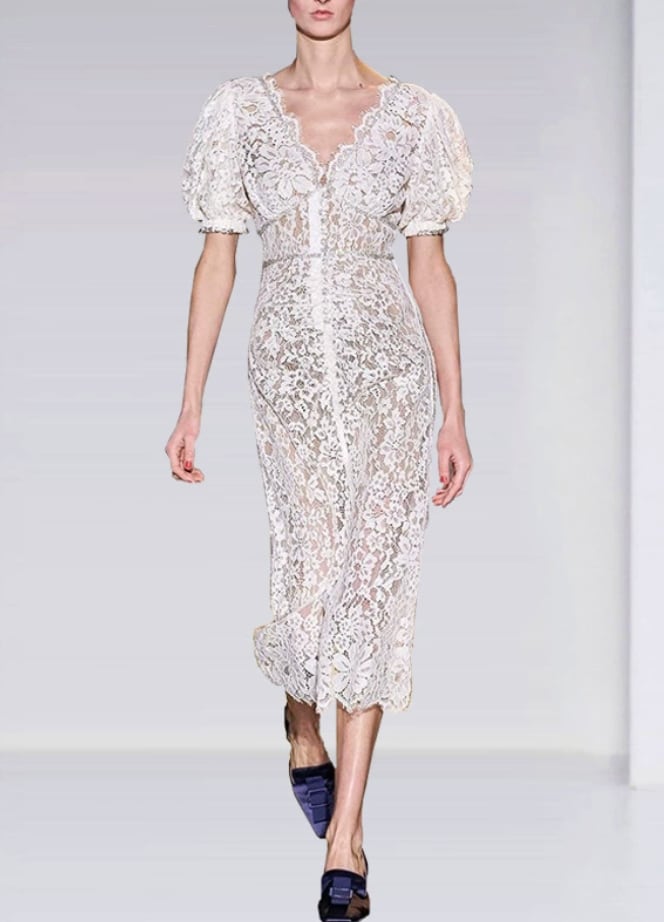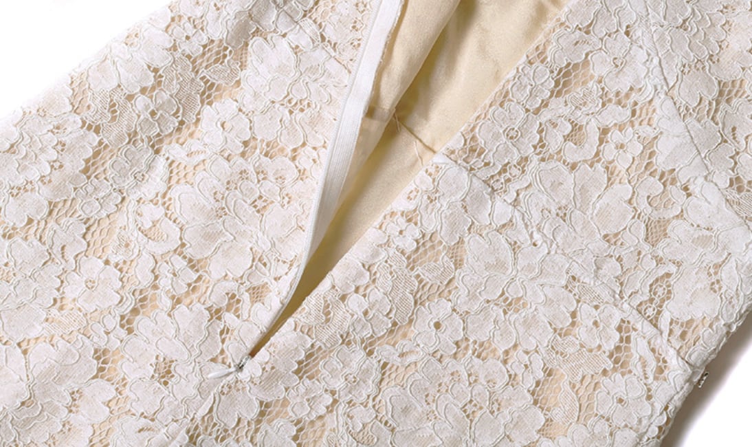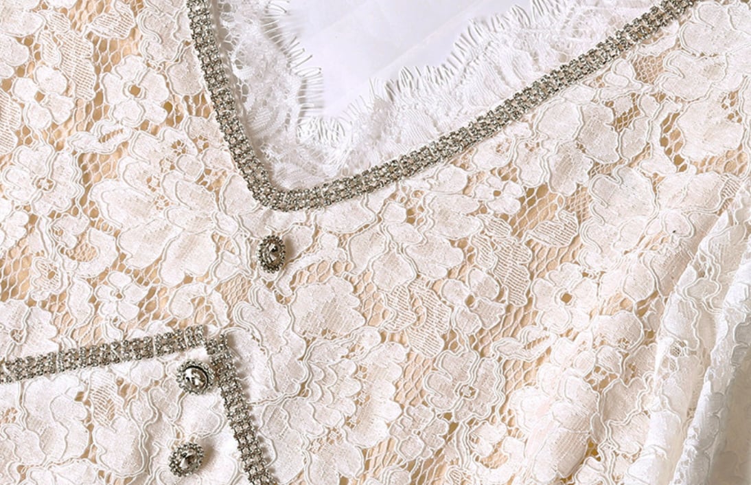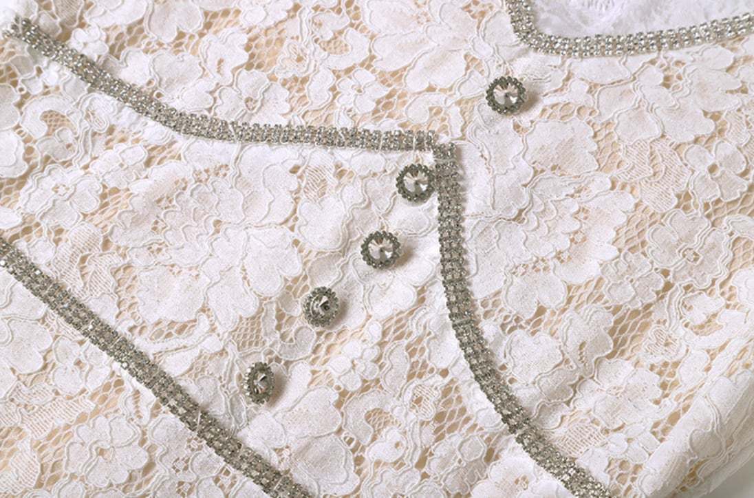 繊細ビジューレースガーリーホワイトドレス