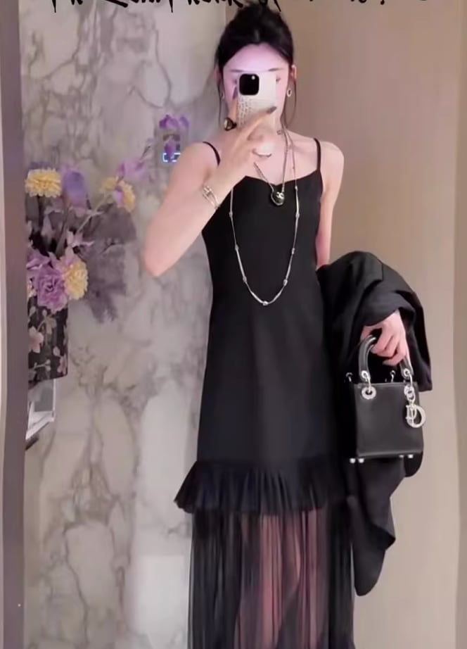 【動画あり】切り替えシースルーフリルキャミワンピース 2色展開