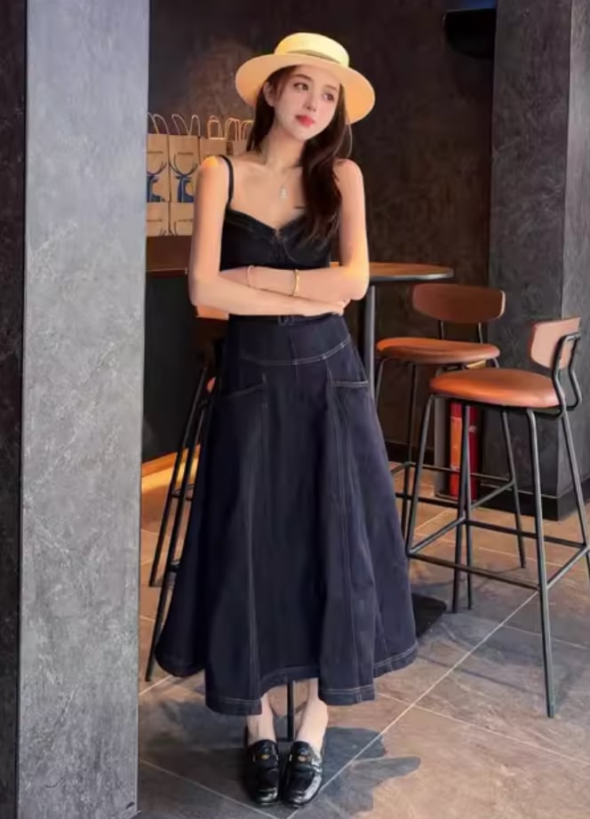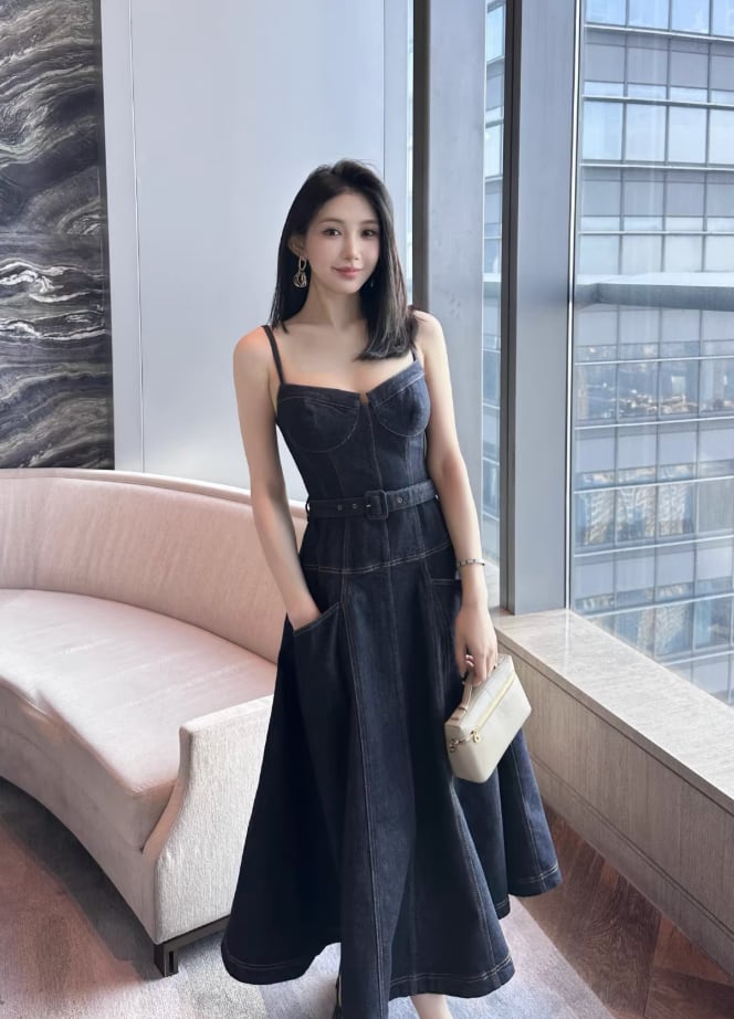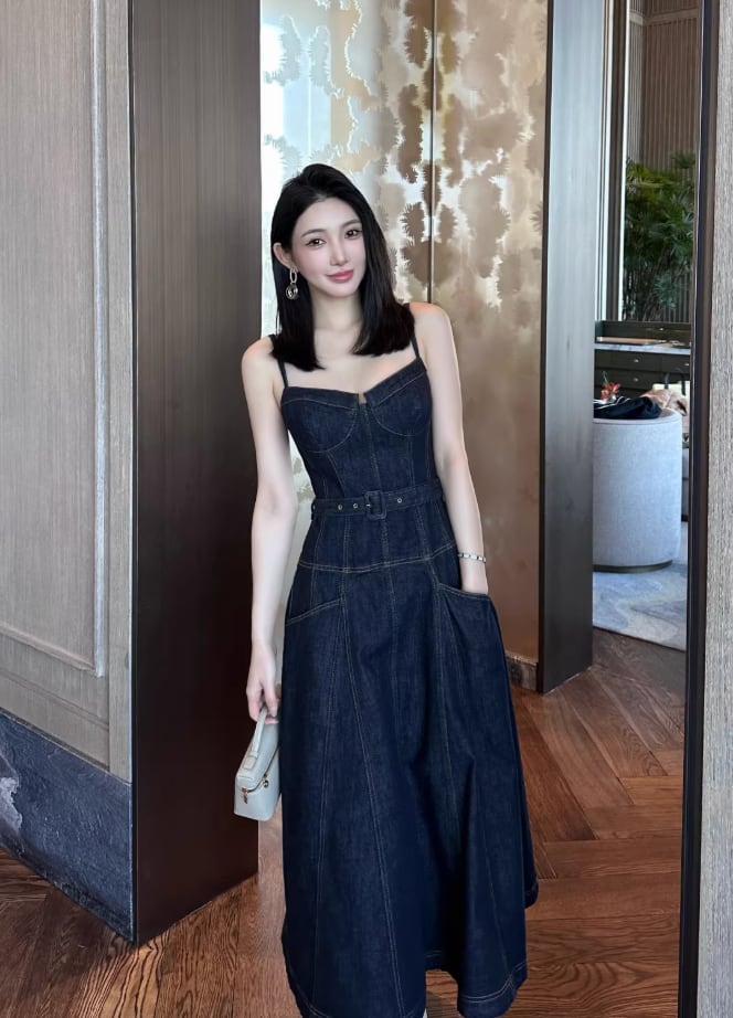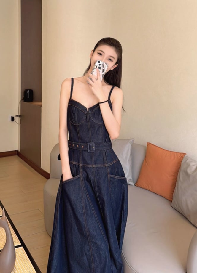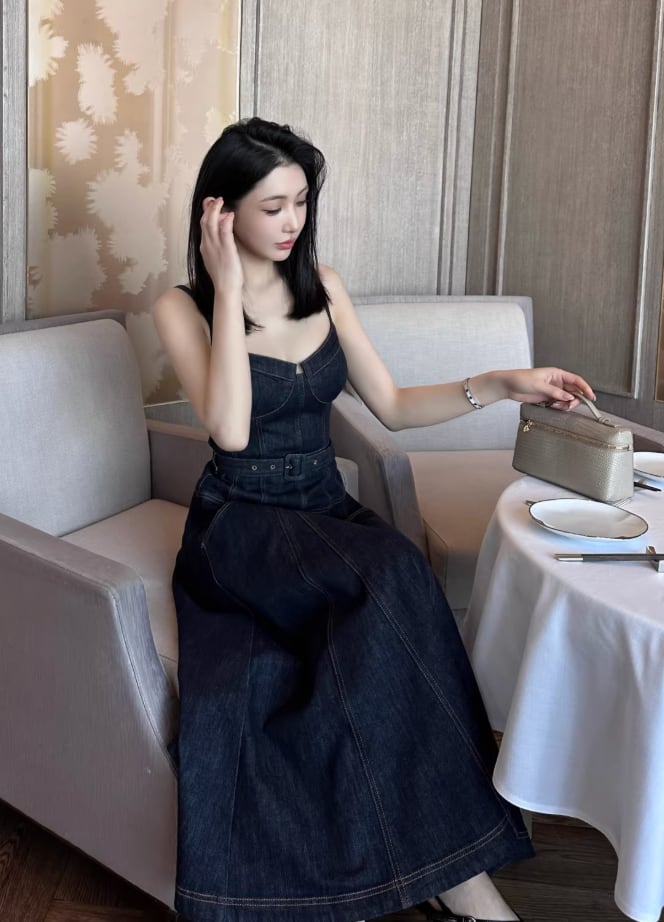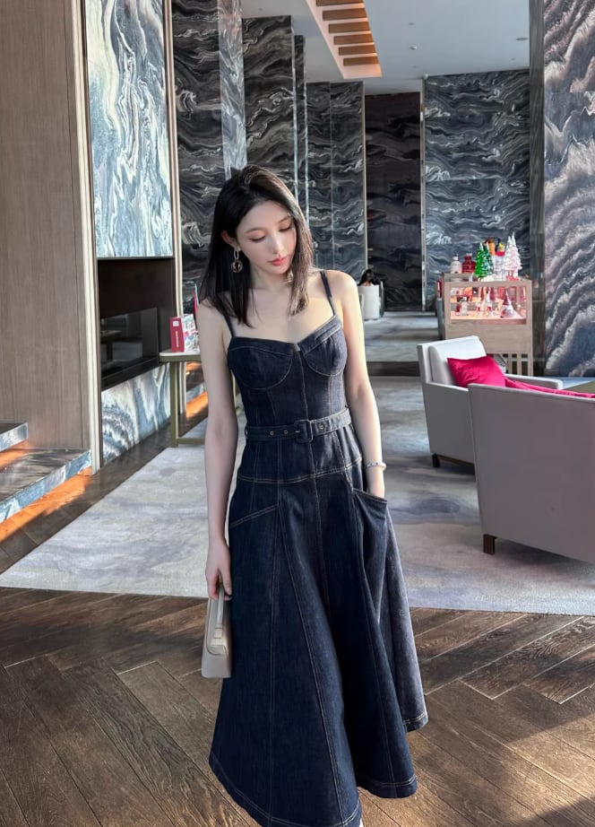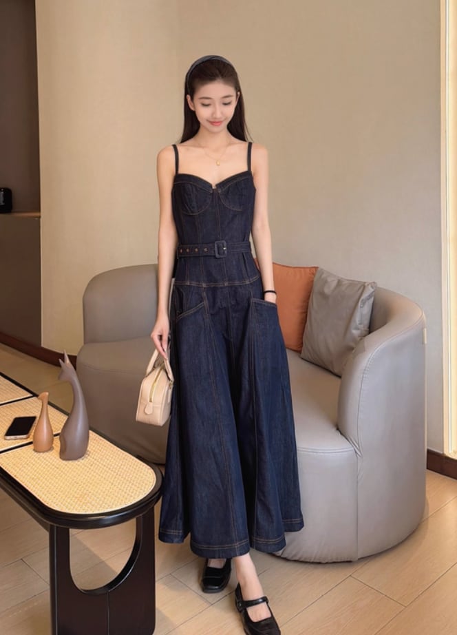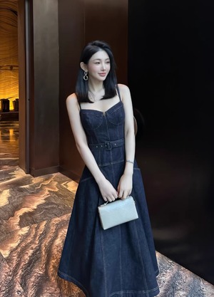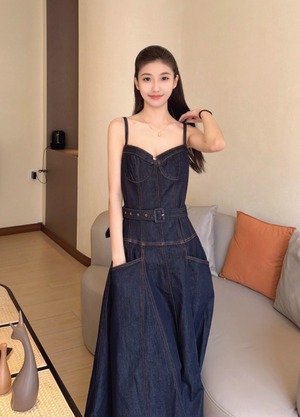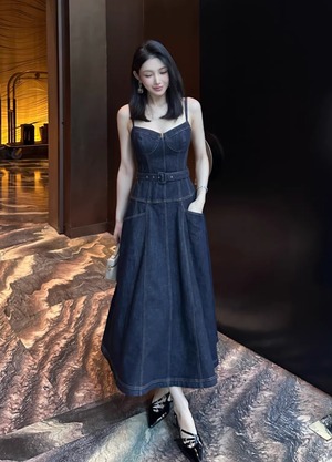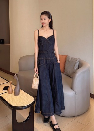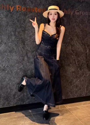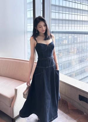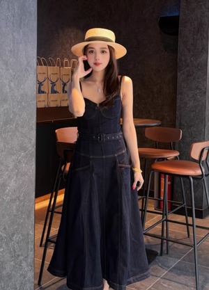 【動画あり】コルセットデザインデニムワンピース