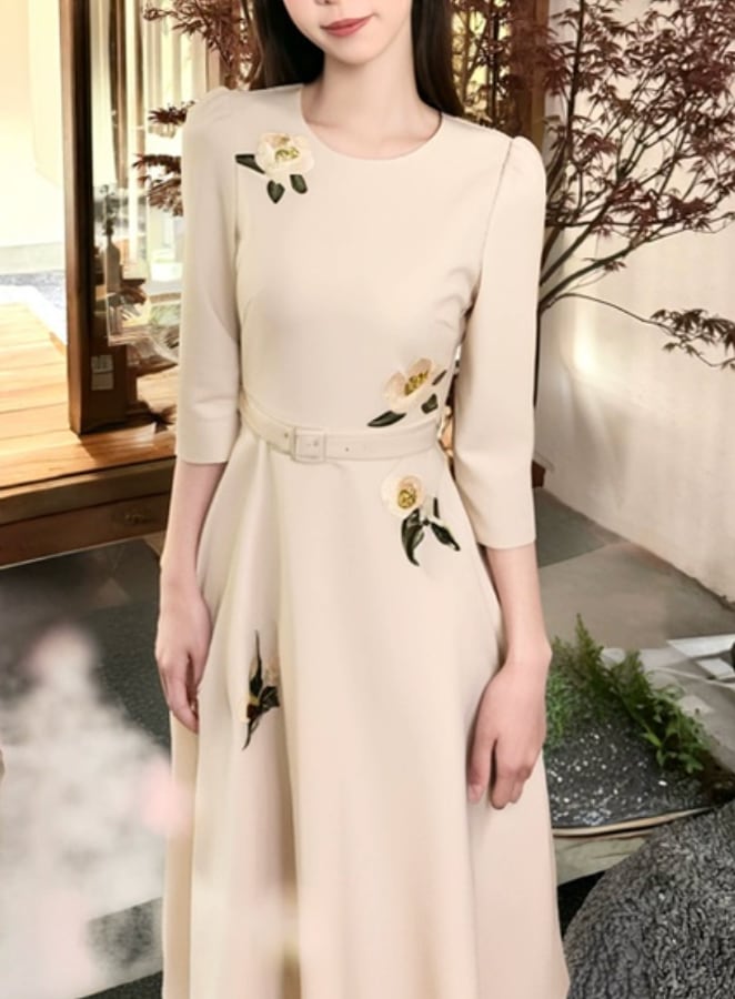 上質フラワー刺繍美ラインワンピース 2種展開