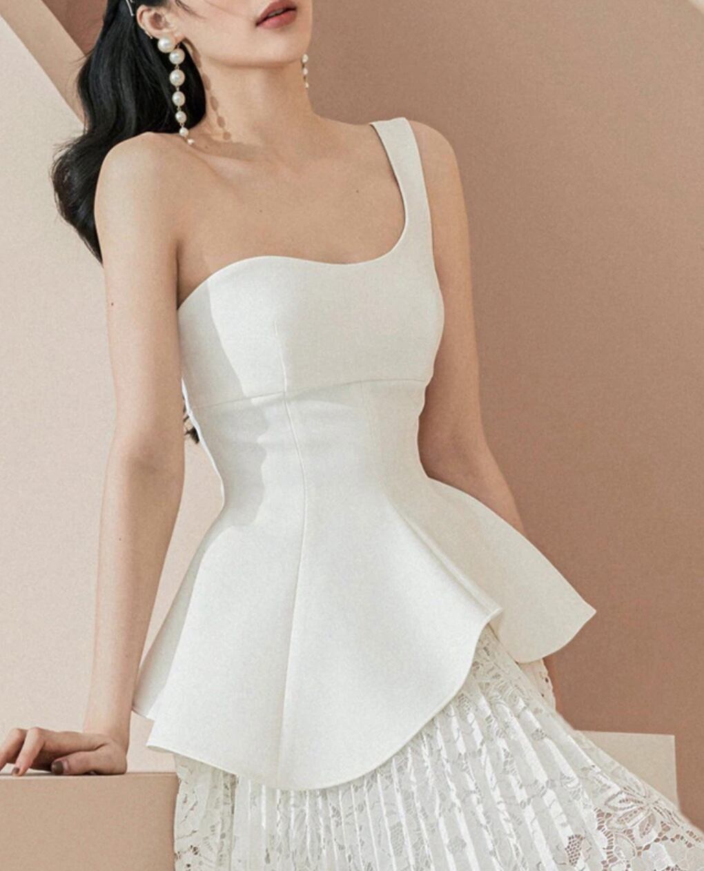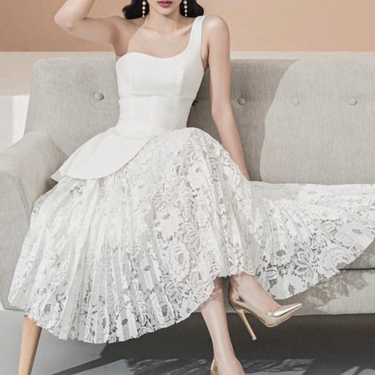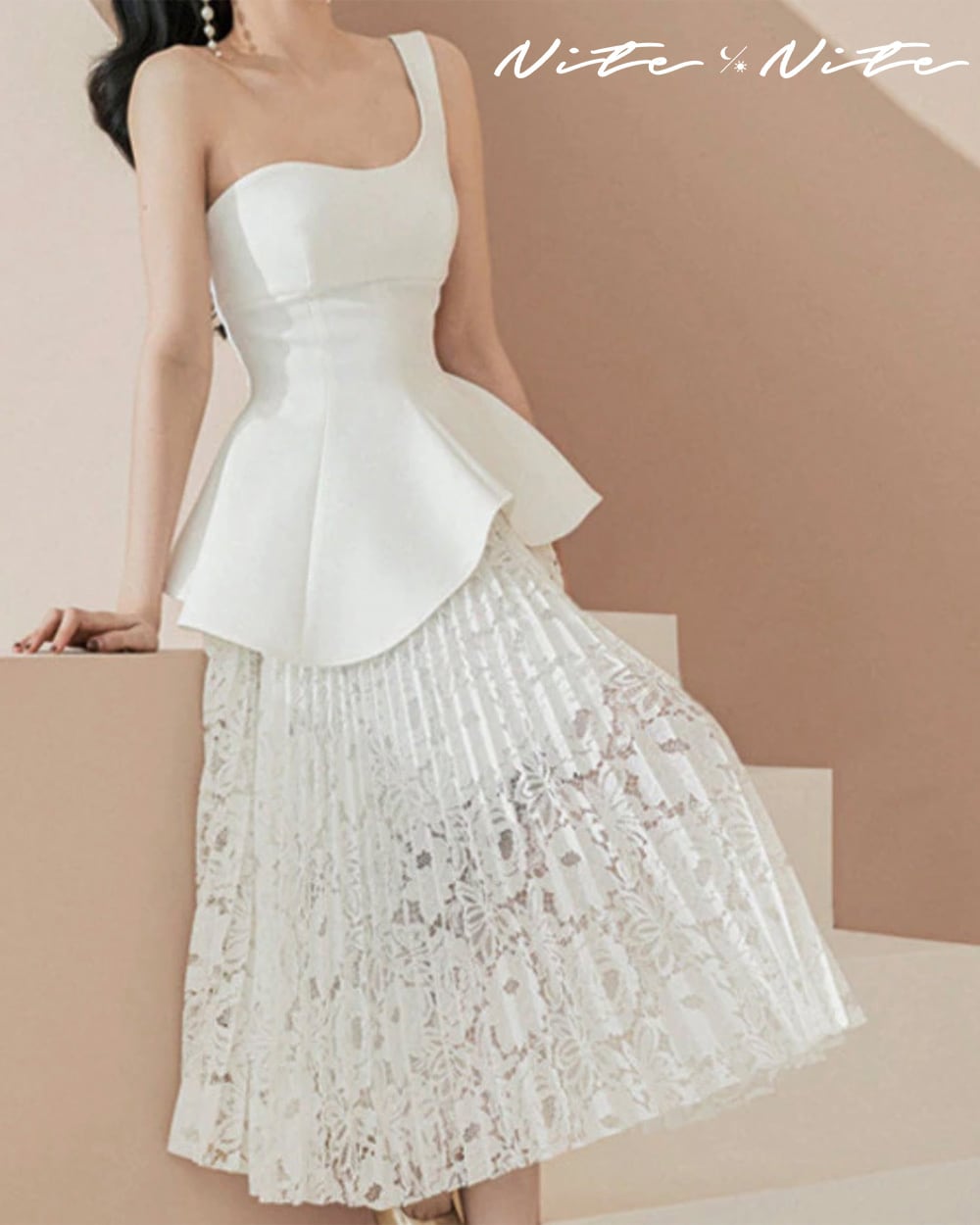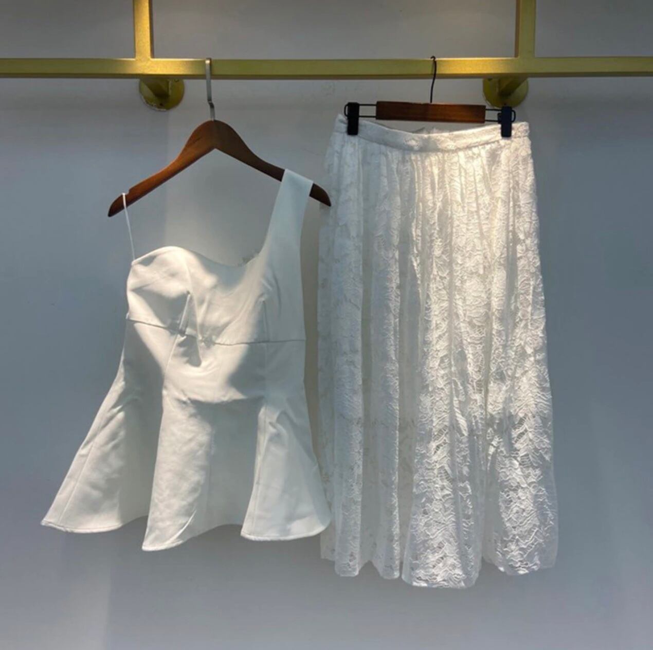 【動画あり】ワンショルダートップス&フラワーレーススカートセットアップ