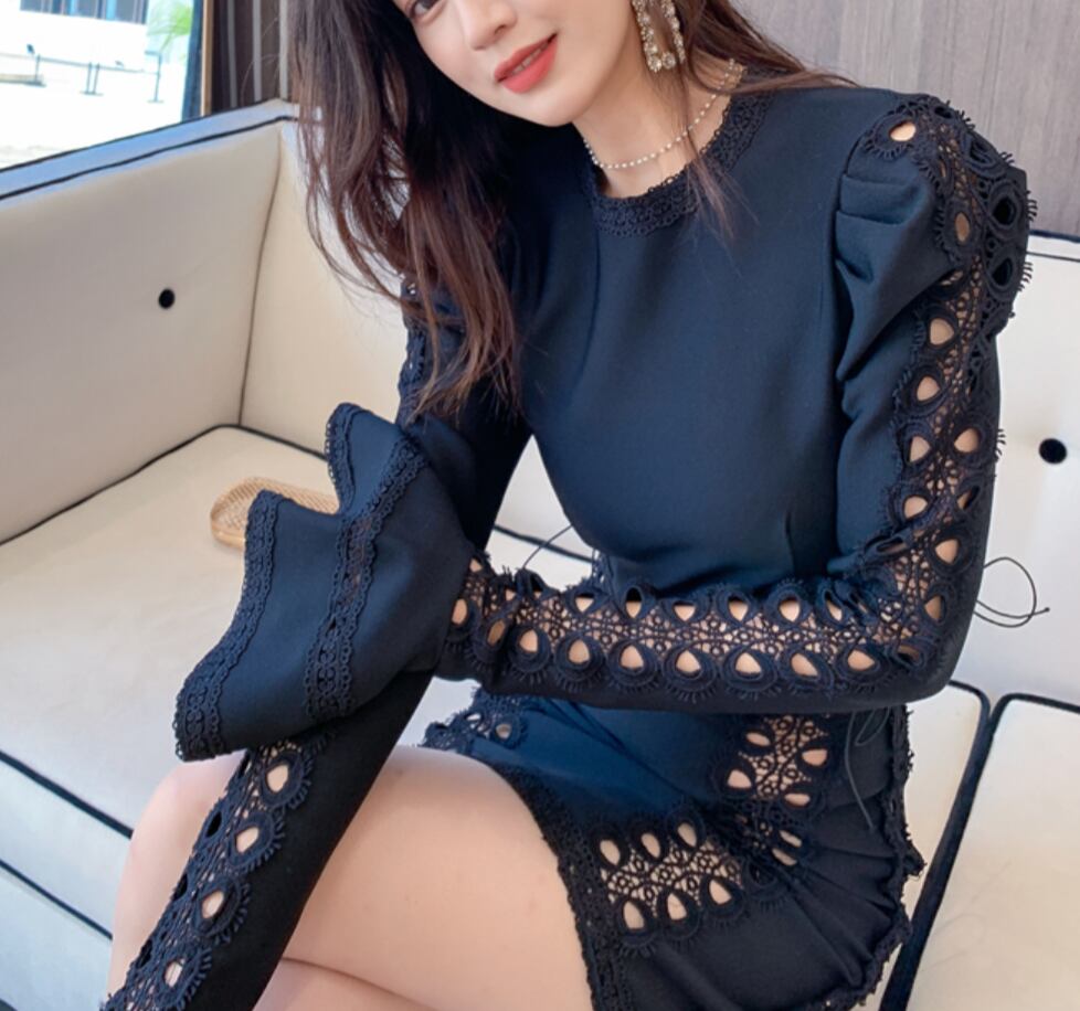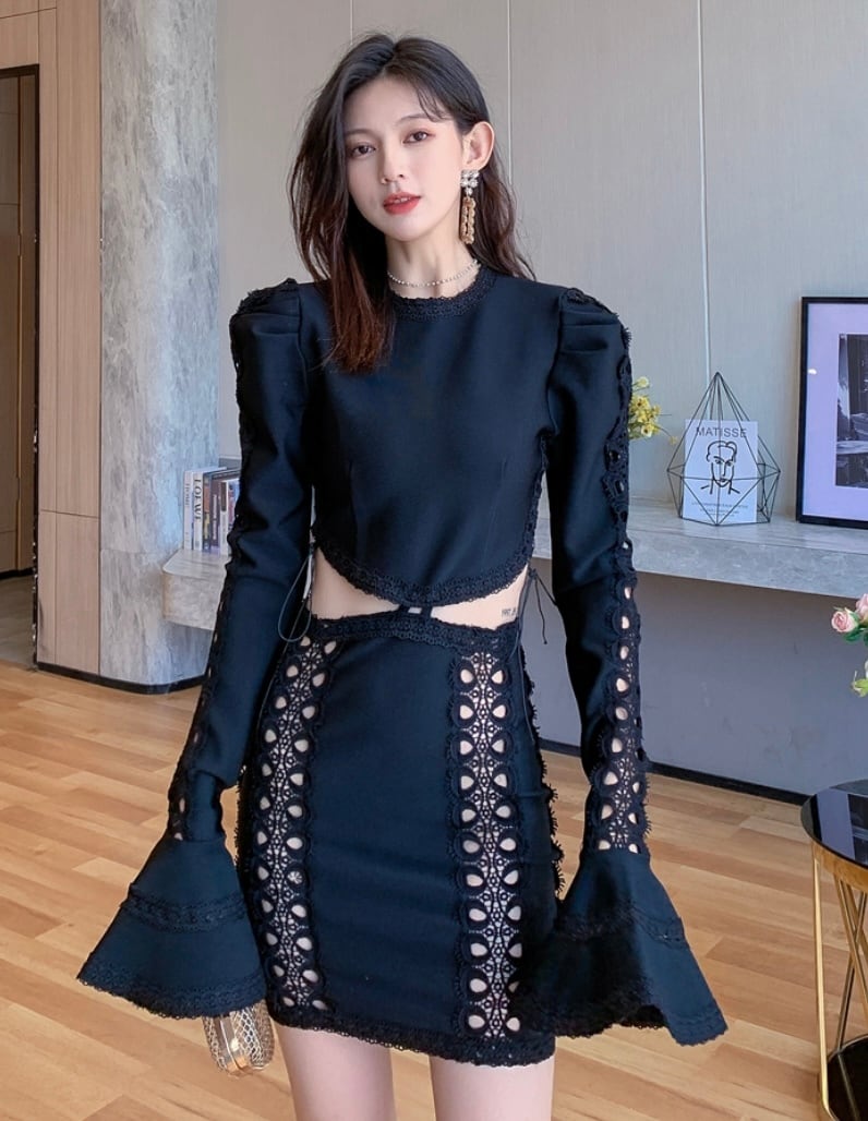 【動画あり】ウエストカットレースミニ丈ワンピース 2色展開