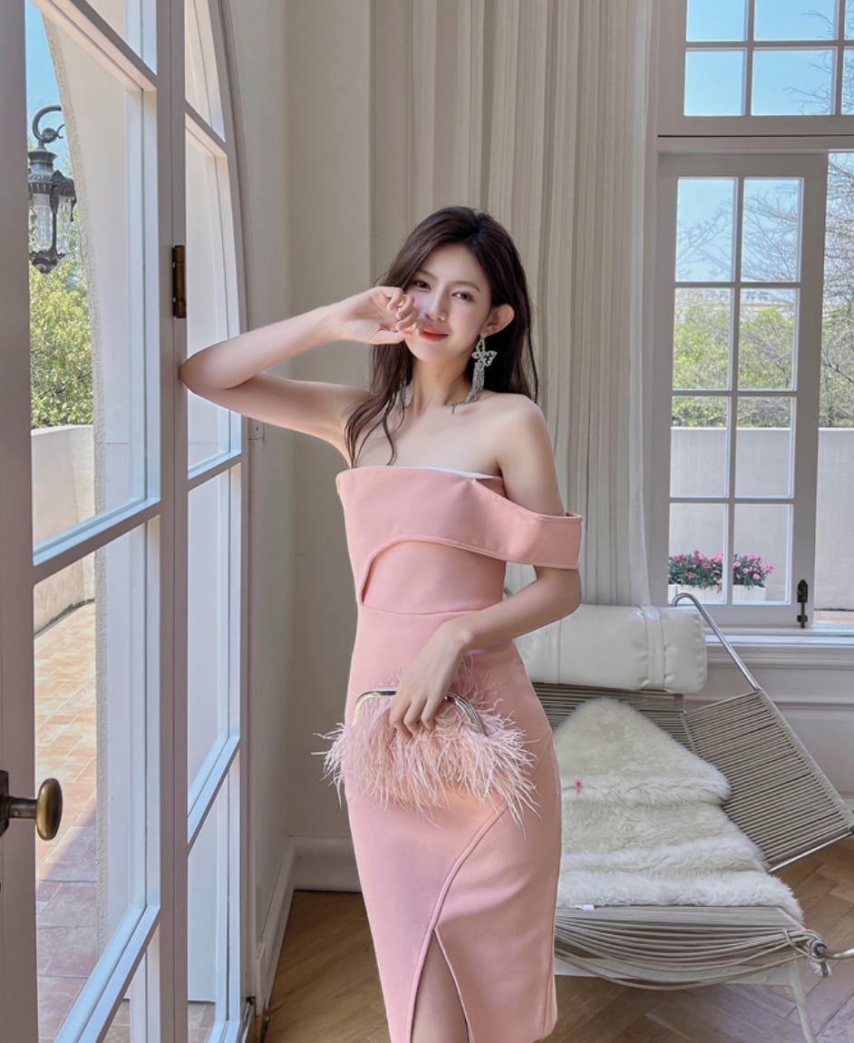 【動画あり】ヌーディアシンメトリーショルダーワンピース