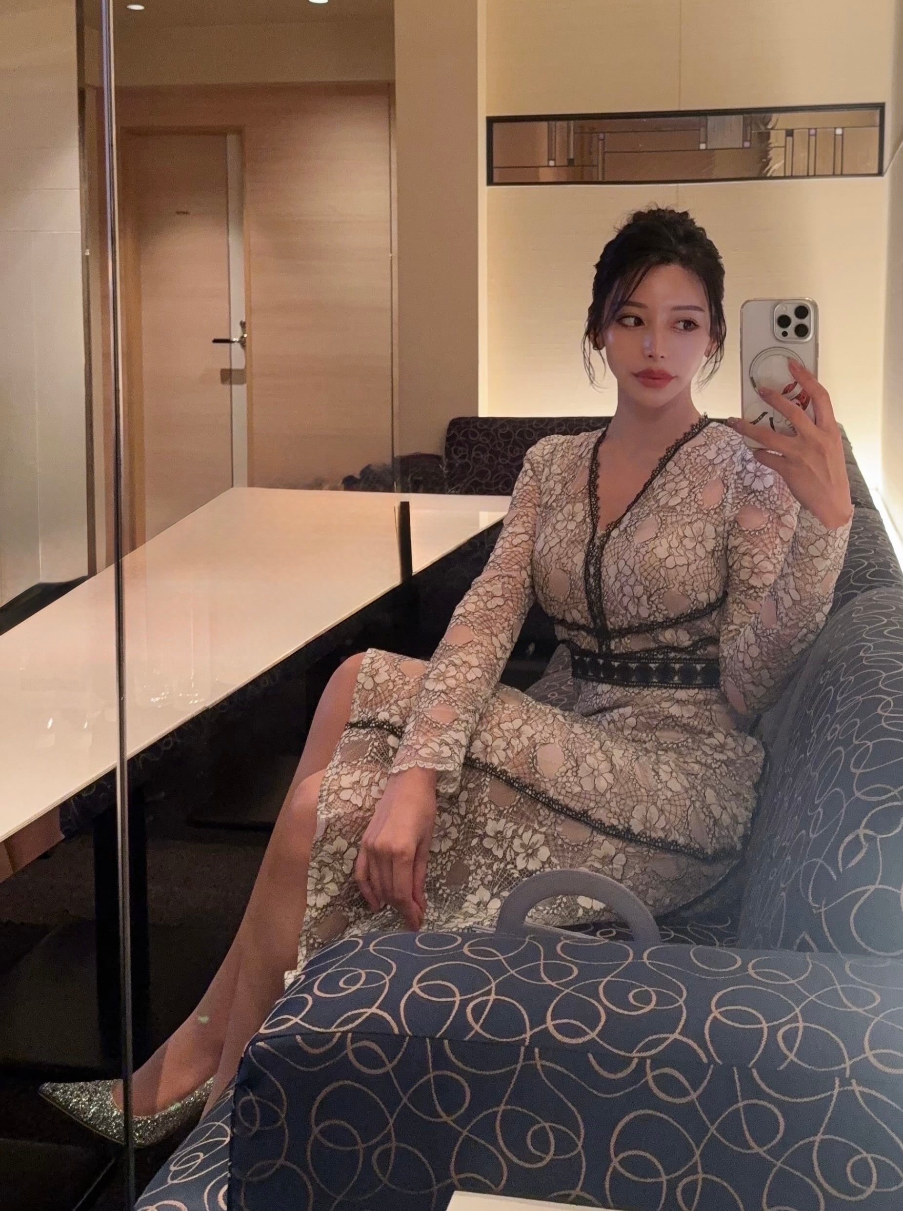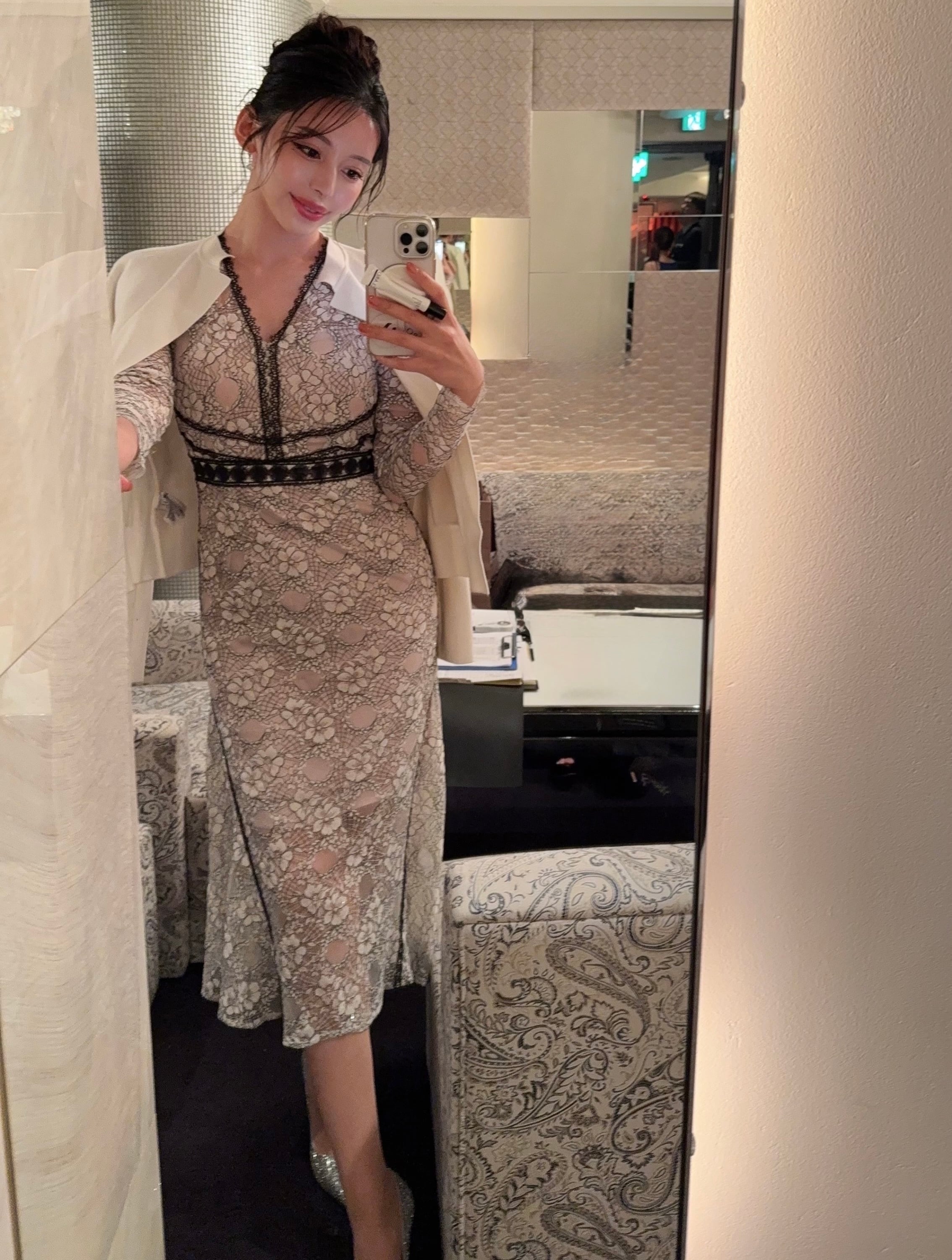 〈かれん様ご愛用〉【動画あり】フラワーレースシースルーバイカラー切り替えワンピース 2色展開